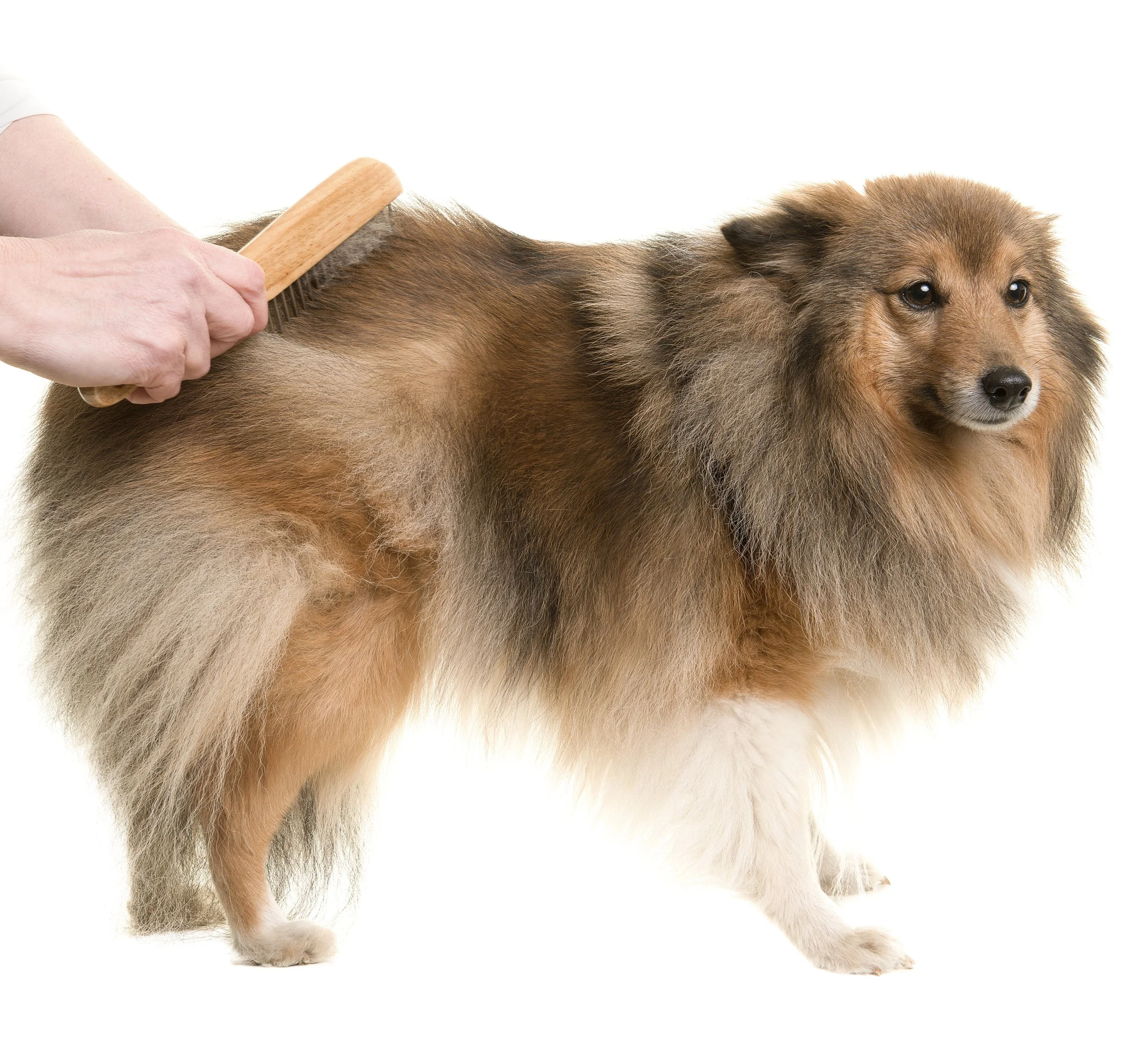 A very skilled grooming technique which involves removing dead undercoat through carding and/or plucking the outer guard hairs (stripping). This is specifically for wire haired breeds and some silky coated dogs. This achieves a more vibrant, healthy, fuller, weatherproofed coat.